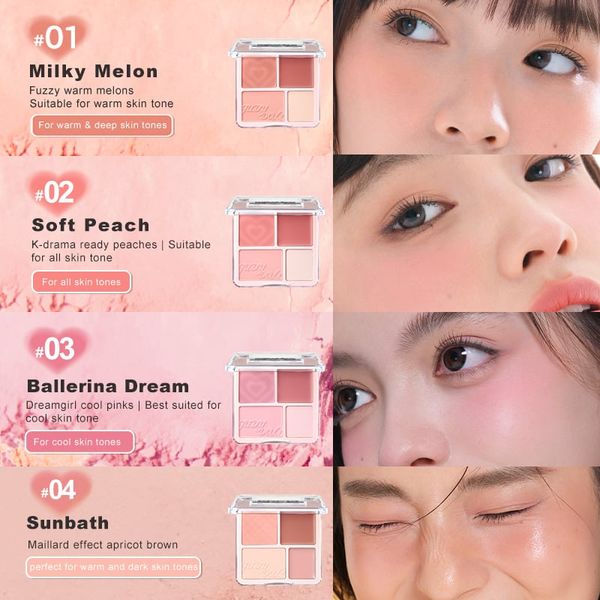 Bảng Phấn Má Hồng Và Phấn Bắt Sáng Judydoll 4 Ô Tông Lì Đa Năng màu 02 Blush And Highlight Palette Soft Peach 9g