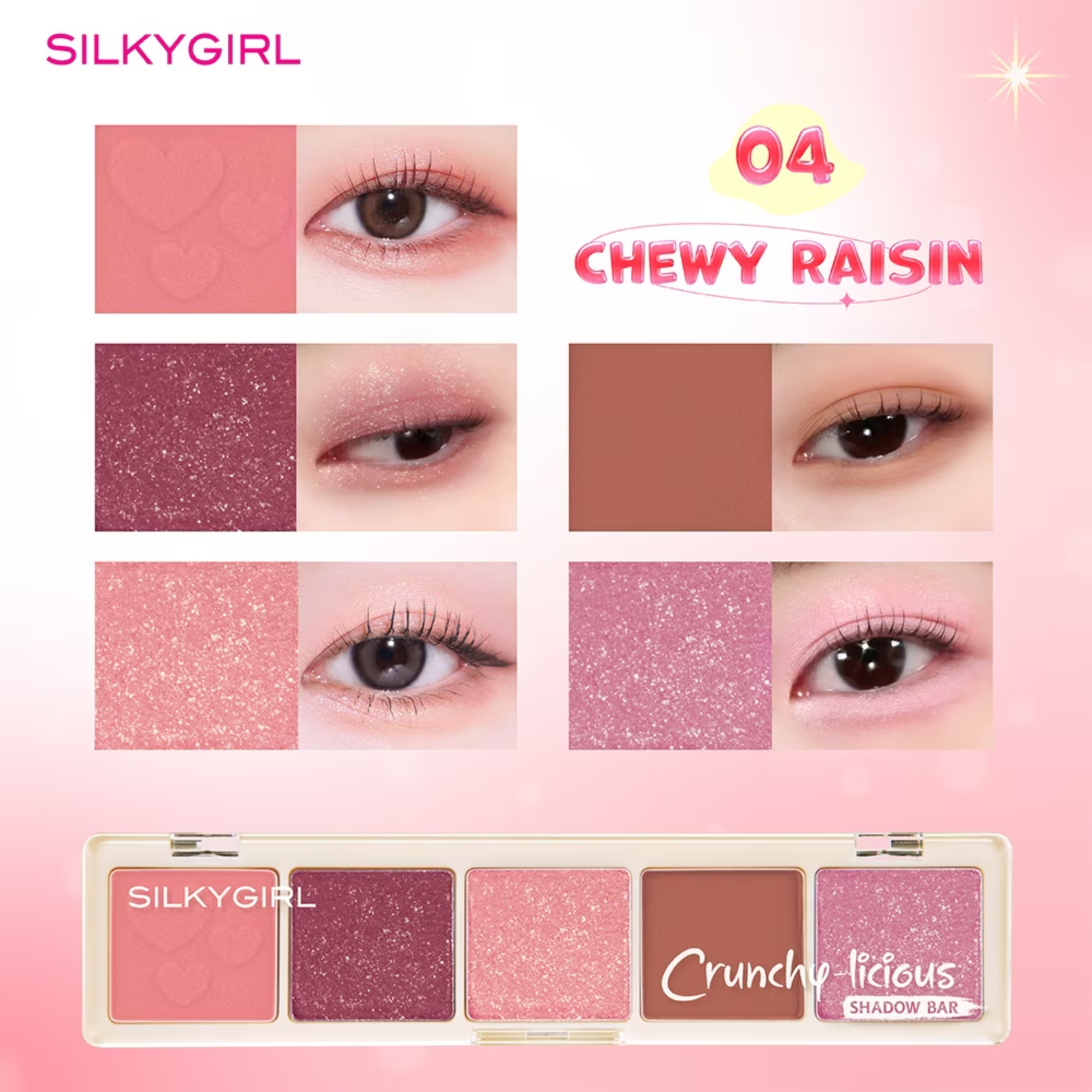 Bảng phấn mắt 5 màu Silkygirl Crunchy Licious Shadow Bar Màu 04 Chewy Raisin 10g