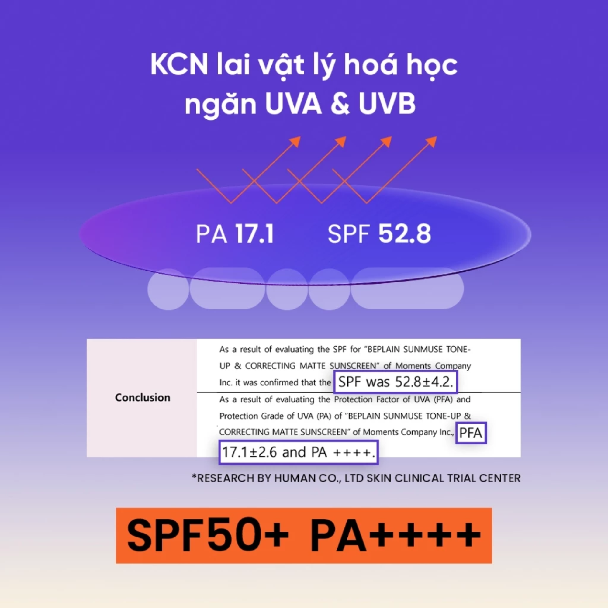 Kem Chống Nắng Nâng Tông Kiềm Dầu Mịn Lì Beplain Sunmuse Tone Up Correcting Matte Sunscreen SPF50+ PA++++ 50ml.