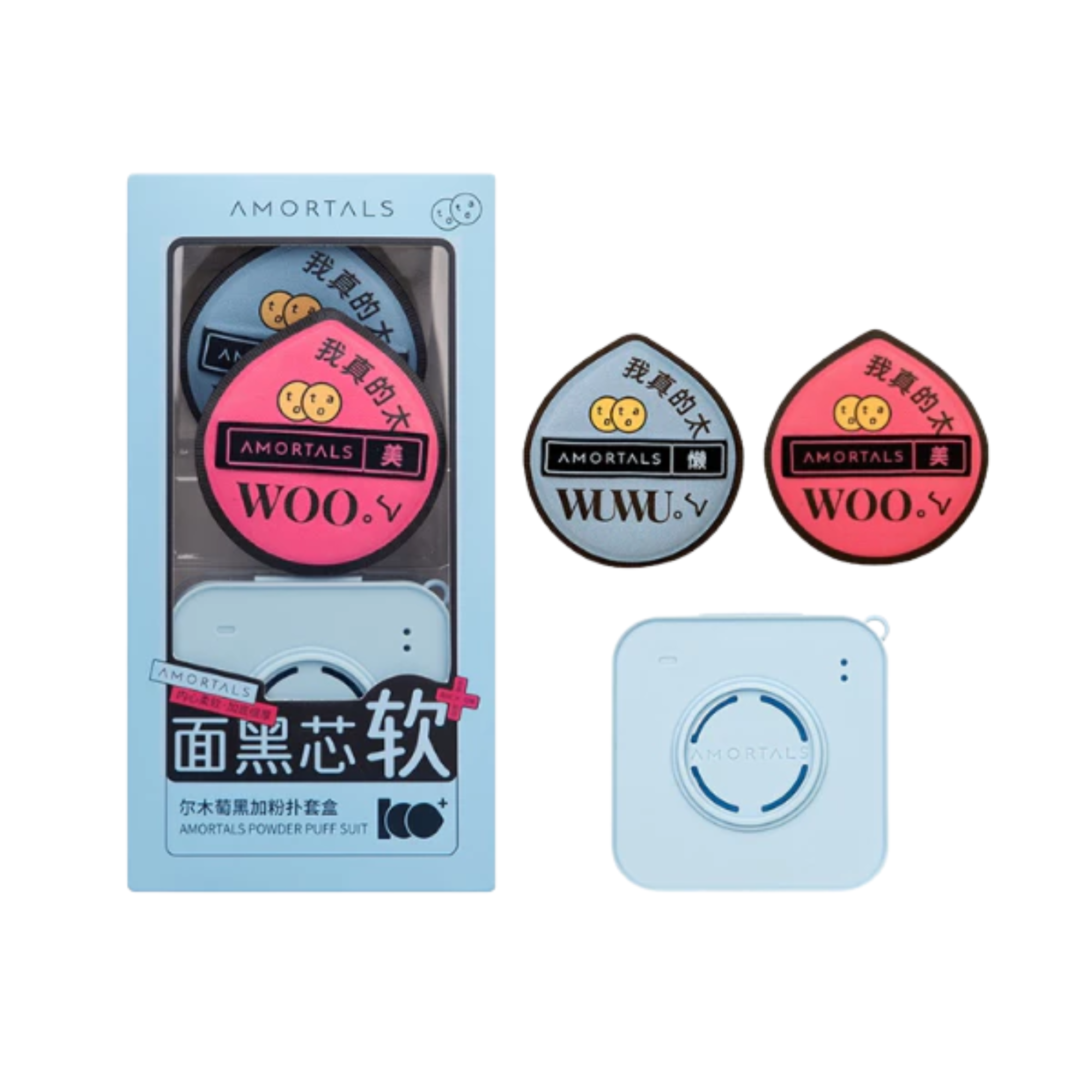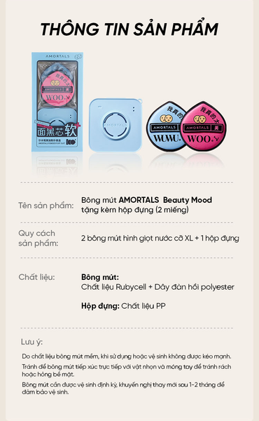 Bộ Bông Mút Dùng Để Tán Kem Nền Dạng Lỏng Amortals Màu Xanh Dương Gồm 2 Bông Mút + 1 Hộp Đựng
