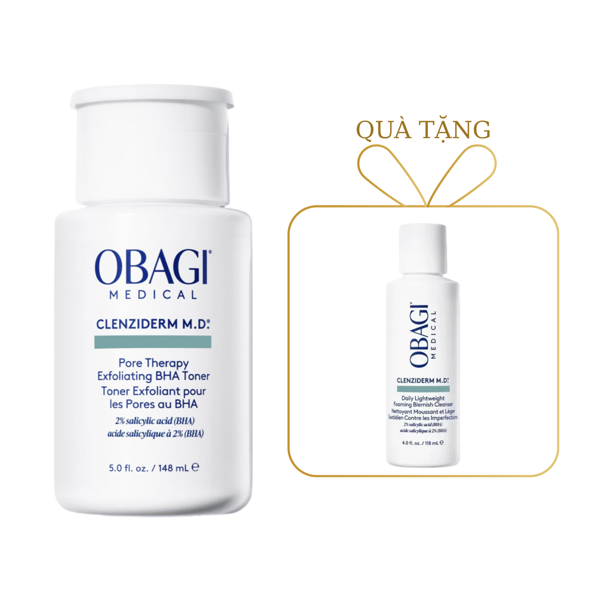 Nước Hoa Hồng Obagi 2% BHA Giảm Nhờn Mụn 148ml Clenziderm MD Pore Therapy Exfoliating BHA Toner tặng Sữa Rửa Mặt 118ml.