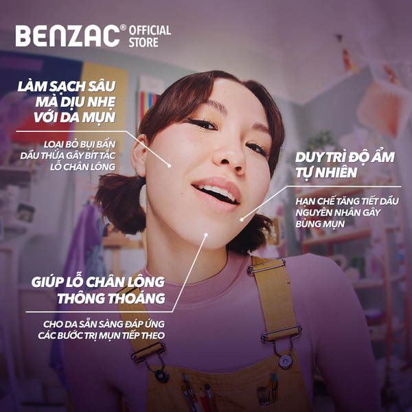 Bọt Rửa Mặt BENZAC Giúp Làm Sạch Sâu Cho Da Dầu Mụn Purifying Foam Cleanser 130ml