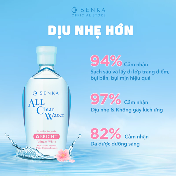 Combo 3 Nước Tẩy Trang Cấp Ẩm Dưỡng Sáng Da Senka All Clear Water Micellar Formula Bright 60ml Trial