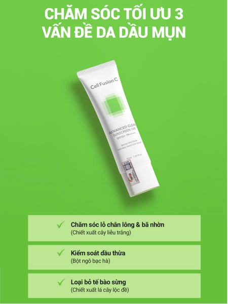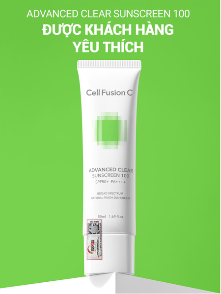 Kem Chống Nắng Phổ Rộng Cho Da Dầu Mụn Cell Fusion C Advanced Clear Sunscreen 100 Spf50+ Pa++++ 50ml.