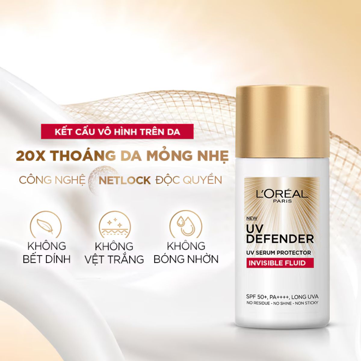 Kem Chống Nắng L'Oreal X20 Thoáng Da Mỏng Nhẹ UV Defender Invisible Resist Daily Sunscreen SPF50+ PA++++ 50ml