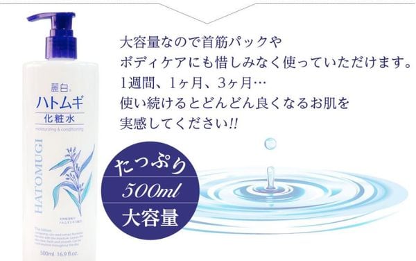 Nước Hoa Hồng Chiết Xuất Ý Dĩ Làm Sáng Da Hatomugi Skin Conditioner 500ml.