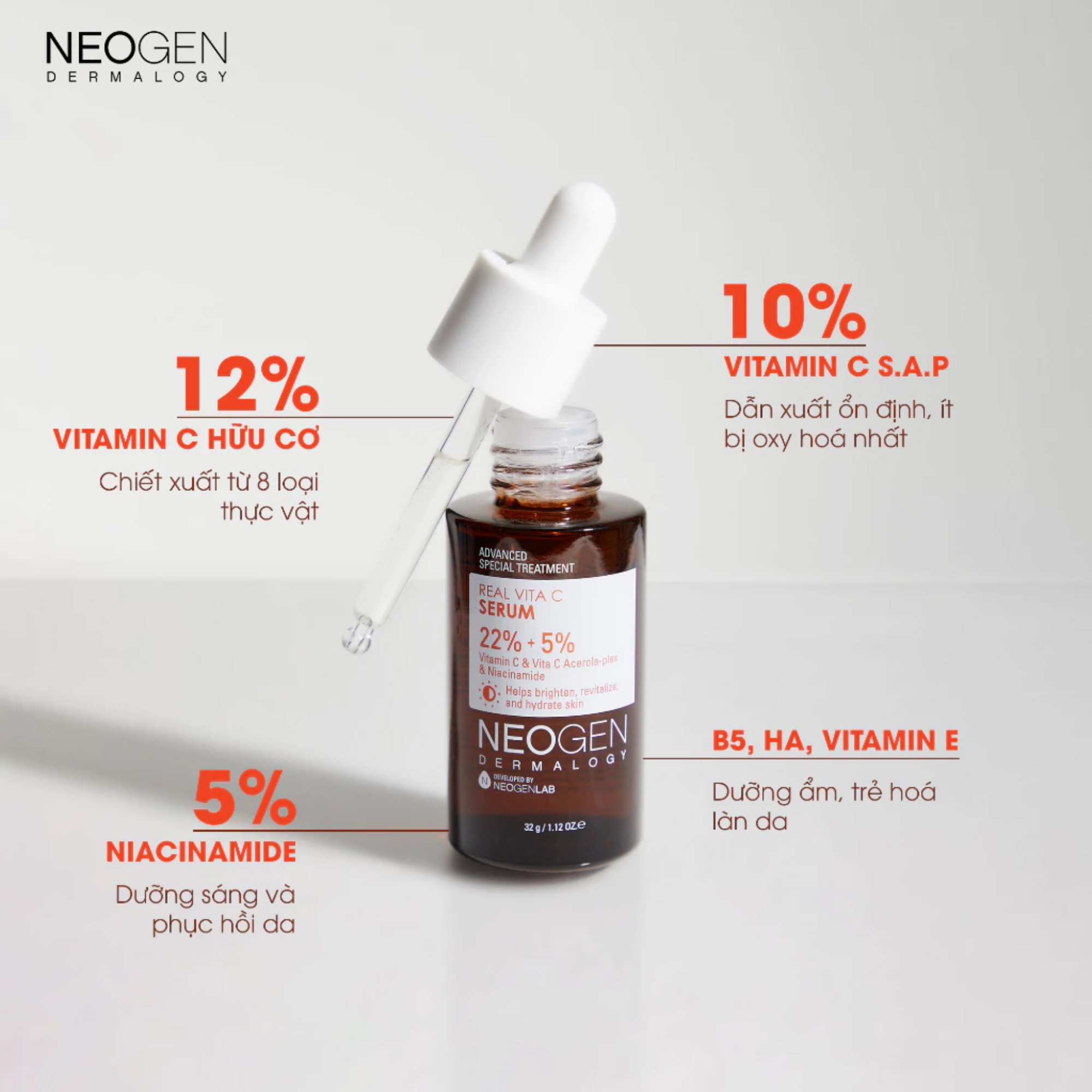 Serum Dưỡng Sáng Da, Mờ Thâm Neogen Dermalogy Real Vita C 22% + 5% Niacinamide Serum 32G.