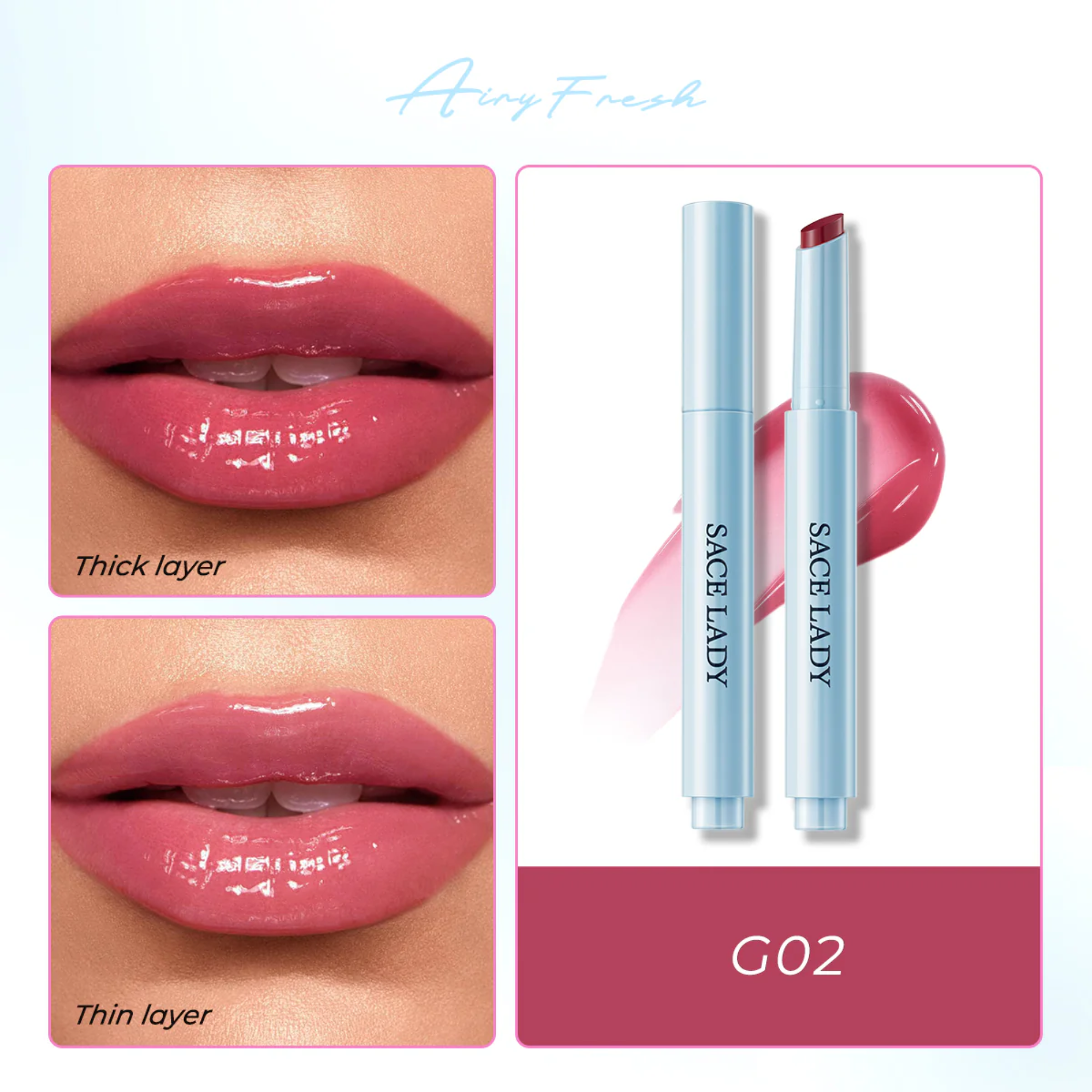 Son Tint Bóng Sace Lady Airy Fresh Glasting Water tint Lipstick 02 1.8g.