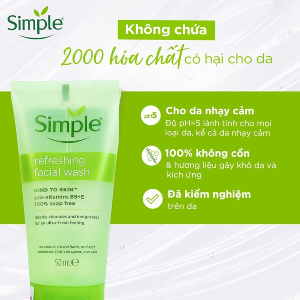 Sữa Rửa Mặt Simple Kind To Skin Refreshing Facial Wash 50ml.